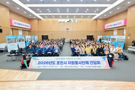 포천시자원봉사센터, ‘2026 포천시 자원봉사단체 간담회’ 개최 포천신문  기자 / ipcs21@hanmail.net 입력 : 2026년 03월 27일  트위터 페이스북 밴드 카카오스토리  < 단체 기념사진 > 포천시자원봉사센터는 지난 26일 포천시청 대회의실에서 ‘2026 포천시 자원봉사단체 간담회’를 개